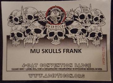 | Back to Adepticon in 2016 baby! This time for the whole thing! This was about the best overall game con experience I've ever had. Whaaaaaaat? Yep. The convention is not just well run but the people are totally cool fully engaged gamers that want you to come back so they go waaayy out of their way to help you out. First off, in honor of the MU Skulls with their charter RPG presentation at Adepticon they created this badge design! Amazing design and I'm humbled that they thought of us. |