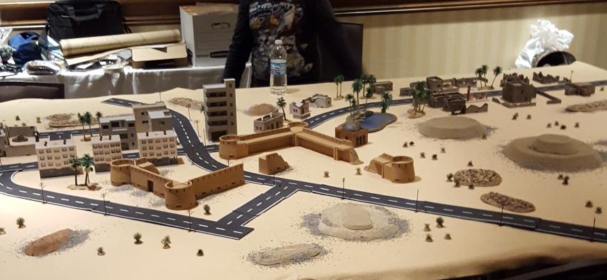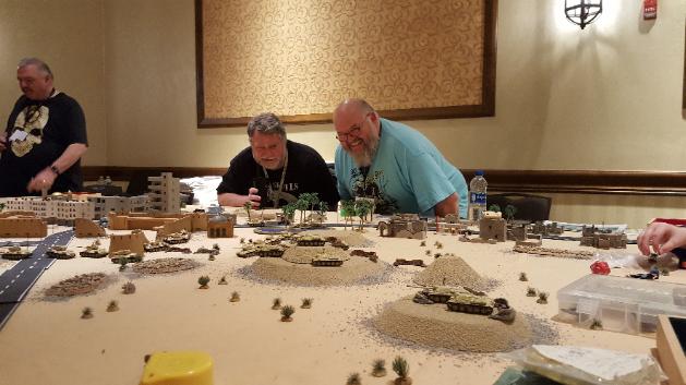 | Mike and I had been talking about this event for weeks, no, months. It was a battle from the Arab Israeli Wars and we had a solid plan and/or strategy! It was based in large part, on a strategy my friend Clay and I used many years ago at Origins when we fought a First Iraq War battle for the airport. The rules set was Tractix a favorite of Gary's that I was glad I didn't have to actually know because the things was a collection of sub referencing charts based on gun size and armor thickness and angle of trajectory. |