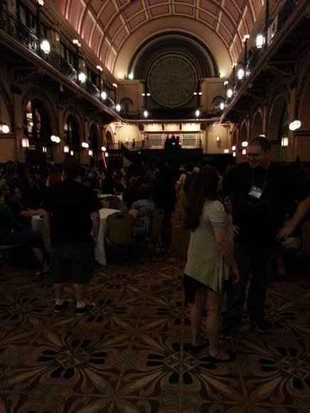 | This is actually from Sunday but I had to snag a picture of my favorite Paul Giamatti film being played at my favorite convention! "Send me 40 pigs, the kind not good for eating." |