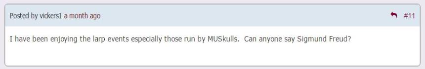 | MU Skulls Rob, Bryanna, and Scott do a great job building great LARP adventures every single year. But don't take my word for it! |