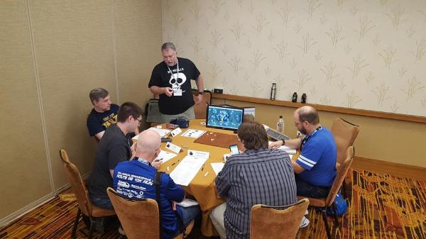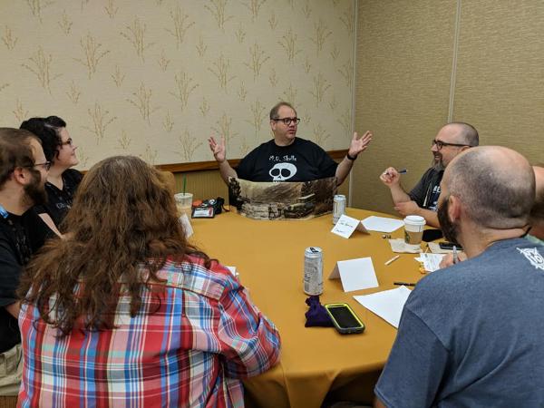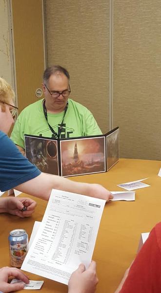 | David running his Call of Cthulhu game The Bespoke Gods. What kind of a title is that? He'll tell you the only one Gen Con would accept. AND AWESOME PRIZE SUPPORT! |