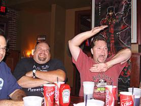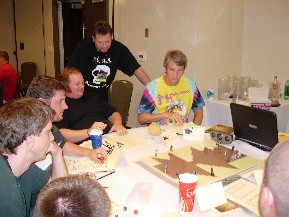 | From worst to best! My Saturday night game included the guys from Bicycle Games, The Kentucky Fried Gamers, and Gary McCabe of Goodman Games. It's groups like this that make me go to Gen Con! |